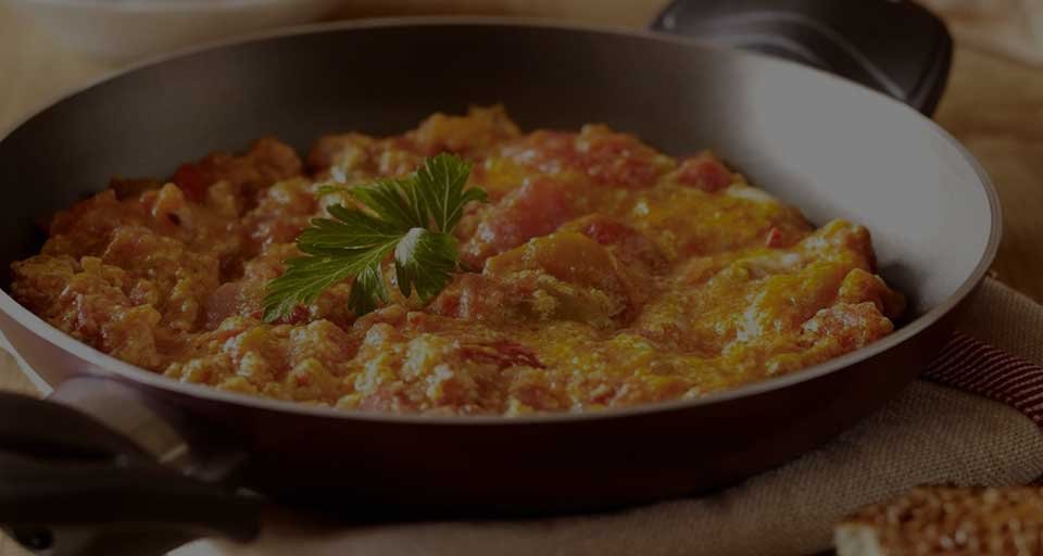 Taze domates, yeşil biber ve çiftlik yumurtalarıyla hazırlanan bol malzemeli menemeni, sıcak ekmek eşliğinde afiyetle tüketin!
